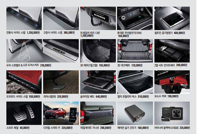 렉스턴 스포츠 칸과 쿨멘은 여러 가지 커스터 마이징과 데크탑을 장착할 수 있어서 꾸미기도 좋은 차량입니다.