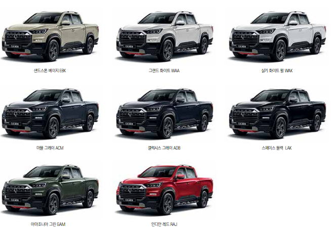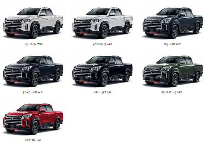 렉스턴 스포츠 칸의 색상과 렉스턴 스포츠 칸 쿨멘의 색상은 조금 다르므로 확인해 보시기 바랍니다.